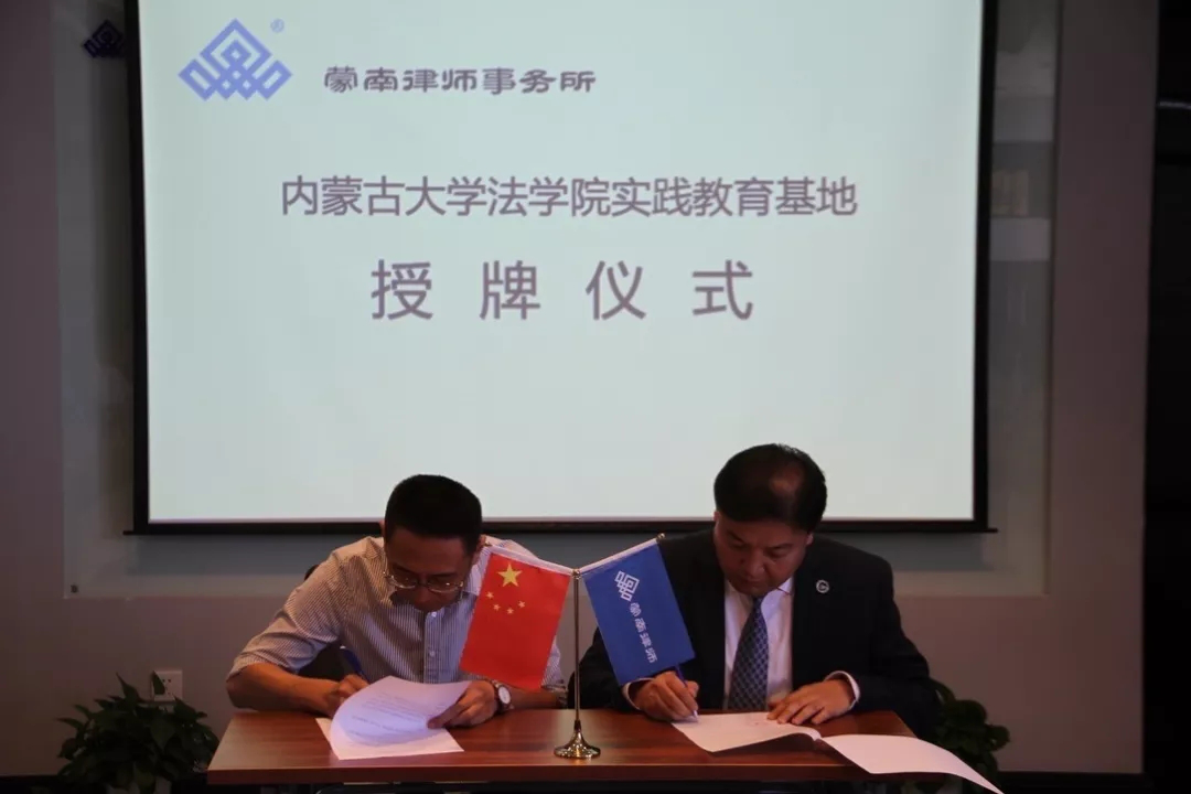 2019年8月29日,太阳成集团tyc122ccvip与鄂尔多斯市蒙南律师事务所共建实践教育基地暨授牌仪式于鄂尔多斯市蒙南律师事务所会议室举行。太阳成集团tyc122ccvip副经理丁鹏与蒙南律师事务所主任千那日苏代表双方签订合作协议。本次仪式由蒙南律师事务所主任千那日苏支持,太阳成集团tyc122ccvip副经理丁鹏、行政办公室主任李俊龙,蒙南律师事务所党支部书记邬飞等出席了本次签约仪式。