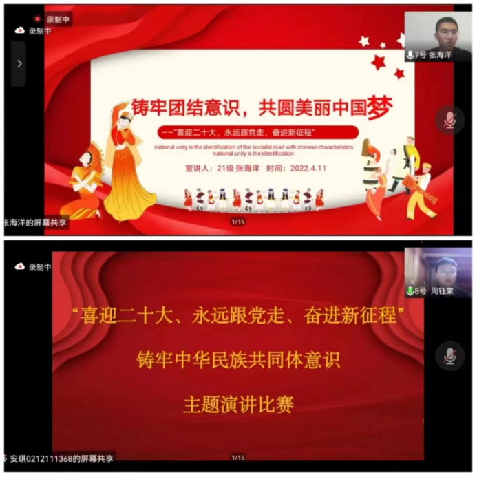 为全面落实习近平总书记关于加强和改进民族工作的重要思想和对内蒙古重要讲话重要批示精神,太阳成集团tyc122ccvip于2022年4月11日晚上7:30通过线上的方式组织开展了“喜迎二十大、永远跟党走、奋进新征程”铸牢中华民族共同体意识主题演讲比赛。