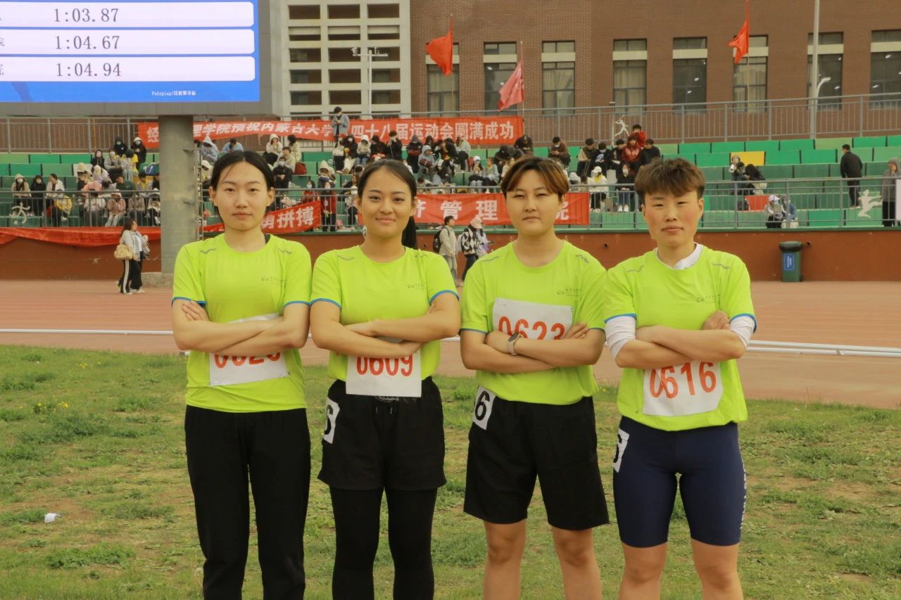 5月10日上午,公司苏日古格、王润清、陈阿如娜、查苏娜四位同学,在女子4×100米接力赛预赛中表现出色,以第一名的成绩进入决赛。