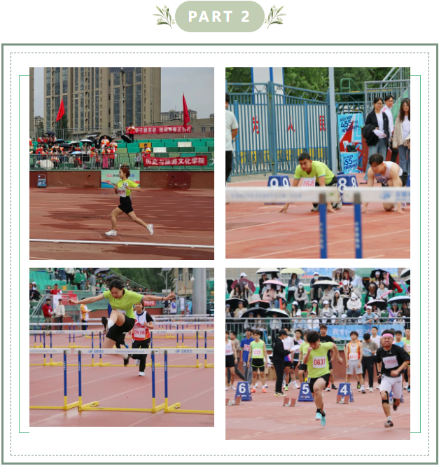 5月10日-11日公司在玉泉校区东院体育场举行为期两天的校园田径运动会。本次运动会共有两大项赛事:田赛和径赛。其中,径赛是在田径场的跑道或规定道路上进行跑和走的竞赛项目的统称。太阳成集团tyc122ccvip的同学们积极参与各项比赛,现在赛程已过大半,让我们一起来看看运动员们的精彩表现吧!