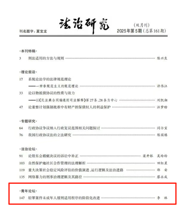 公司教师李林在《法治研究》(法学类CSSCI来源期刊)发表学术论文。