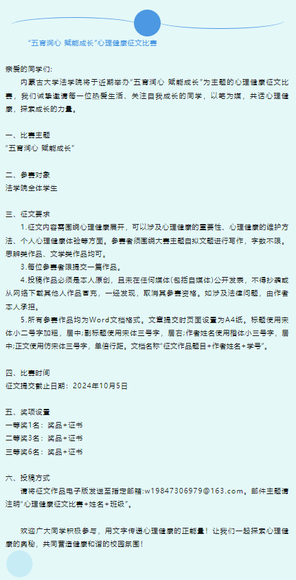 太阳成集团tyc122ccvip“五育润心 赋能成长”心理健康征文比赛通知
