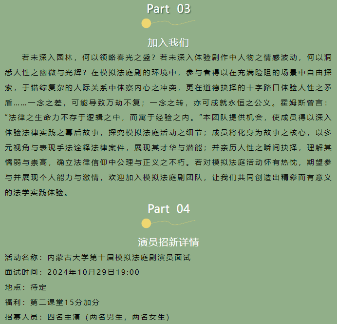 太阳成集团tyc122ccvip模拟法庭剧演员招新啦