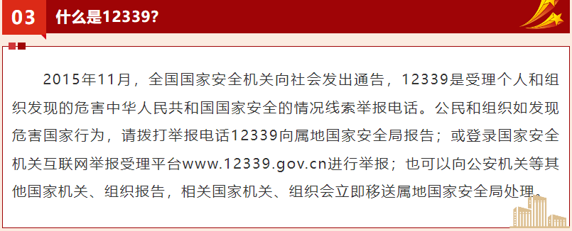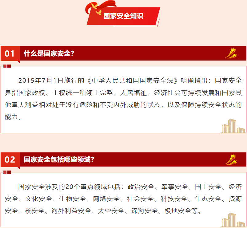 2025年4月15日是第十个全民国家安全教育日,今年的主题是“全民国家安全教育 走深走实十周年”。树立国家安全意识,自觉关心、维护国家安全是每个公民的基本义务。国家安全与每个人的生活息息相关,让我们共同学习这些知识,提升维护国家安全意识!
