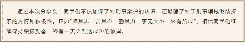 进入主题后,田永伟律师结合自身的经历对“如何进行刑事辩护”进行了讲解,并强调要将理论学习深入到学习实践中。深入主题后,田永伟律师提出了两个经典的案例,并以生动形象的语言和同学们进行了有趣的互动和交流。同学们积极参与其中,对刑事辩护领域有了更深的了解,也对日后在刑事方面的职业生涯规划有了清晰的认知。