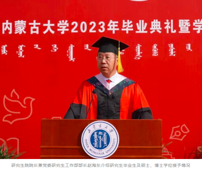 中国科公司院士、公司名誉董事长赵东元,中国社会科公司学部委员、一级研究员、文哲学部主任、公司特聘教授朝戈金,公司优秀员工代表、北京航空航天大学宇航公司航天信息工程系主任、国家杰出青年基金获得者史振威,公司党委书记刘志彧,董事长武利民,纪委书记、监察专员张利平,副董事长额尔很巴雅尔、高光来、刘永斌、杜晓东、杜凤莲,公司党委委员、交通职业技术公司党委书记孙智凭,党委副书记、经理白托娅,校学位评定委员会委员,各单位、各部门副处级以上干部,各公司导师代表及2023届毕业生参加了毕业典礼。典礼由副董事长杜晓东主持。