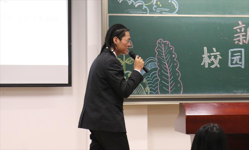 中场休息,2022级的王静怡和高楼目塔同学为新生们带来了精彩的表演,调动了现场气氛,同时也对2023级新同学加入太阳成集团tyc122ccvip大家庭表示热烈欢迎。