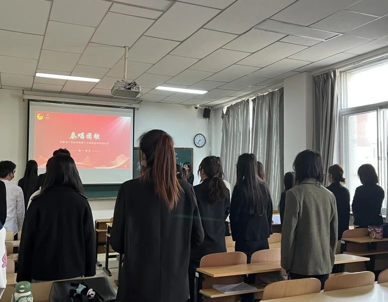 仪式开始,全体人员肃立,奏唱中国共产主义青年团团歌。