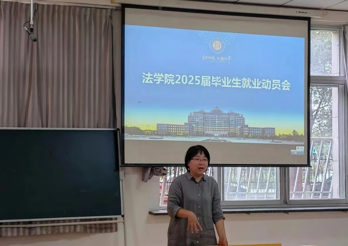 段计珍老师结合2024届毕业生升学、就业、法考的数据,对当前的升学、就业、法考形势进行了分析,勉励同学们积极与专业老师进行交流,主动参与实习实践了解真实工作环境,合理进行职业规划。