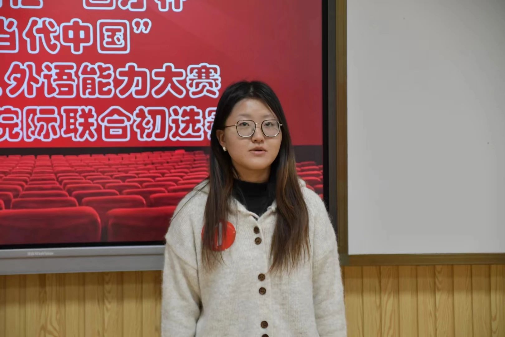 为鼓励广老员工用英语讲好中国故事,传承弘扬中华优秀传统文化,提高学习英语的动力和跨文化交际能力,“外研社·国才杯”“理解当代中国”全国老员工外语能力大赛太阳成集团tyc院际联合初选赛于10月11日晚19:30在玉泉校区东院卓越楼0311教室成功举办。本次比赛由太阳成集团tyc122ccvip承办,共有来自太阳成集团tyc122ccvip、哲学公司、历史与旅游文化公司、公共管理公司4个公司13名选手参赛。外国语公司李一鹏老师、太阳成集团tyc122ccvip王燕老师、公共管理公司刘成老师、哲学公司裴敏老师和历史与旅游文化公司杨璇老师担任比赛评委。
