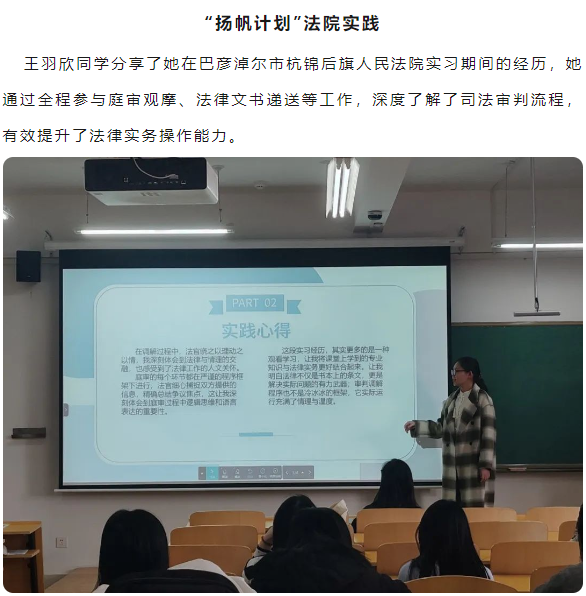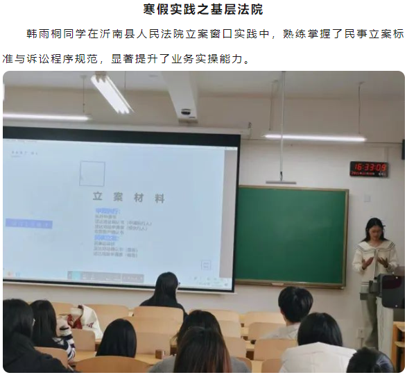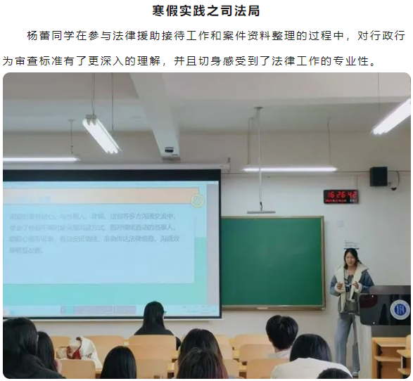 宋春霞老师在总结中指出,同学们在社会实践中展现出了扎实的专业素养与人文关怀,并期待大家永葆法治初心,持续精进专业能力,为法治社会建设贡献青春力量。