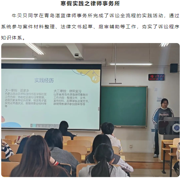 为了更好地鼓励同学们走出校园,走进社会,深入基层,在社会实践里接受教育、增长才能、做出贡献,2月28日下午,公司在玉泉校区西院创新南楼307教室举办"踏实践之路 谱青春法章"寒假社会实践分享会。