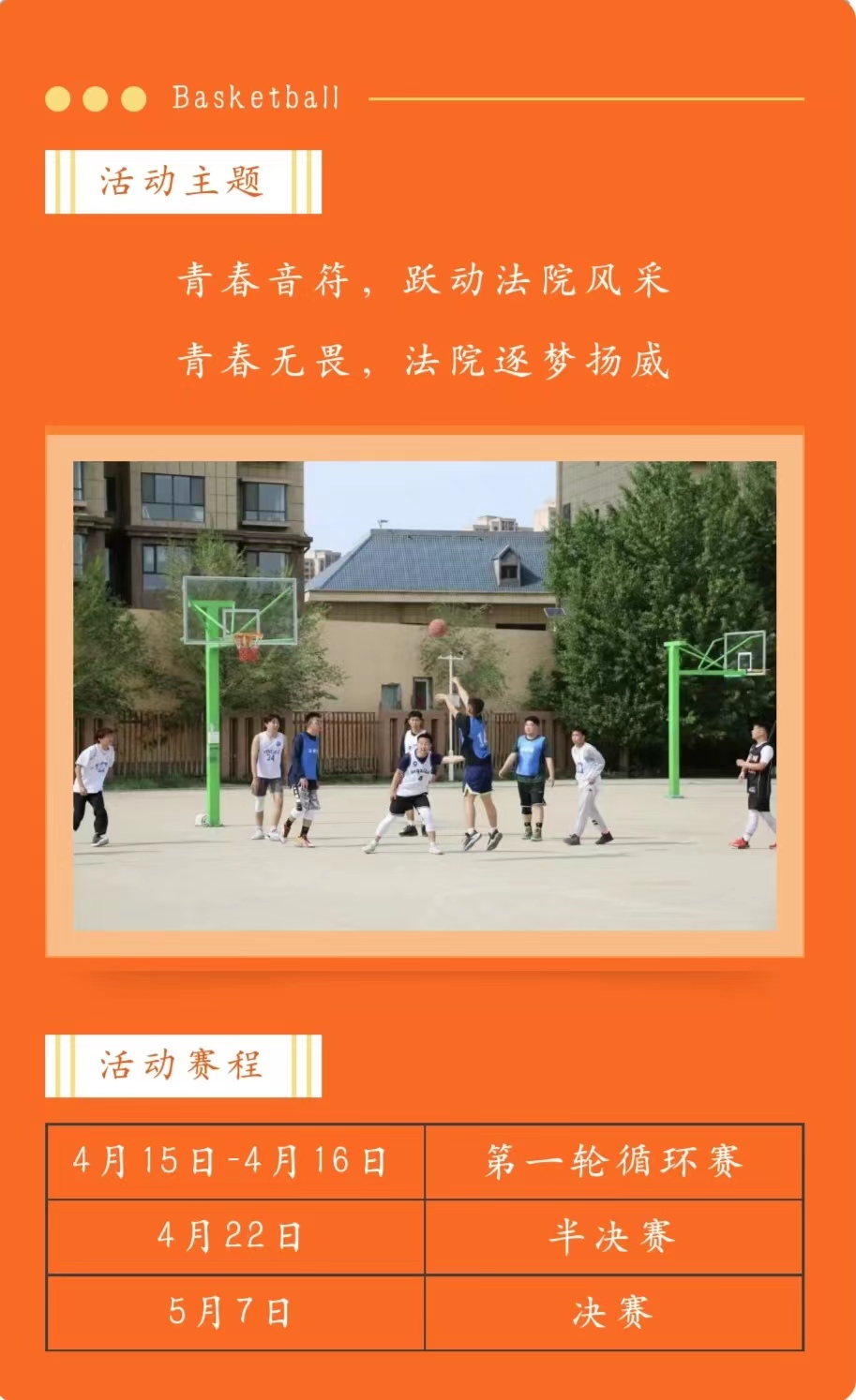 决赛在5月7日拉开帷幕,在本科白队与2022级法律硕士(非法学)的激烈对战中,本科白队以56:33的比分赢得了本场比赛的胜利,2022级法律硕士(非法学)惜败。