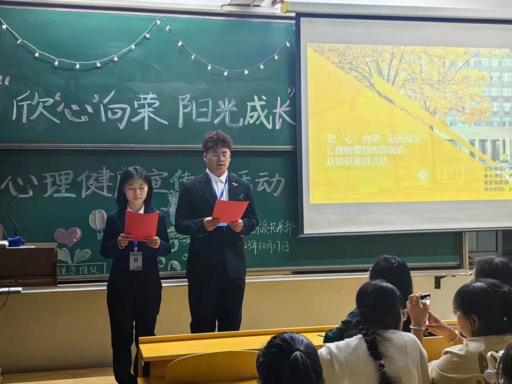 为提高同学们的心理健康素质及适应能力,促进同学们全面协调发展,营造健康向上、积极进取的校园氛围,公司于10月17日晚19:00在玉泉校区西院创业楼201教室开展“欣‘心’向荣 阳光成长”心理健康教育宣传周活动。