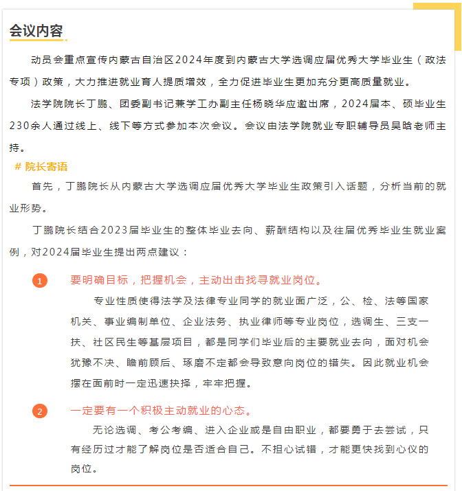 通过此次动员会,与会同学对自己的就业规划有了新的认识和思考,学会了用正确的态度面对就业,树立了就业信心、确定了就业方向。接下来,公司将精准把握当前就业形势,扎实做好就业指导、就业帮扶等工作,努力推动公司毕业生高质量就业。