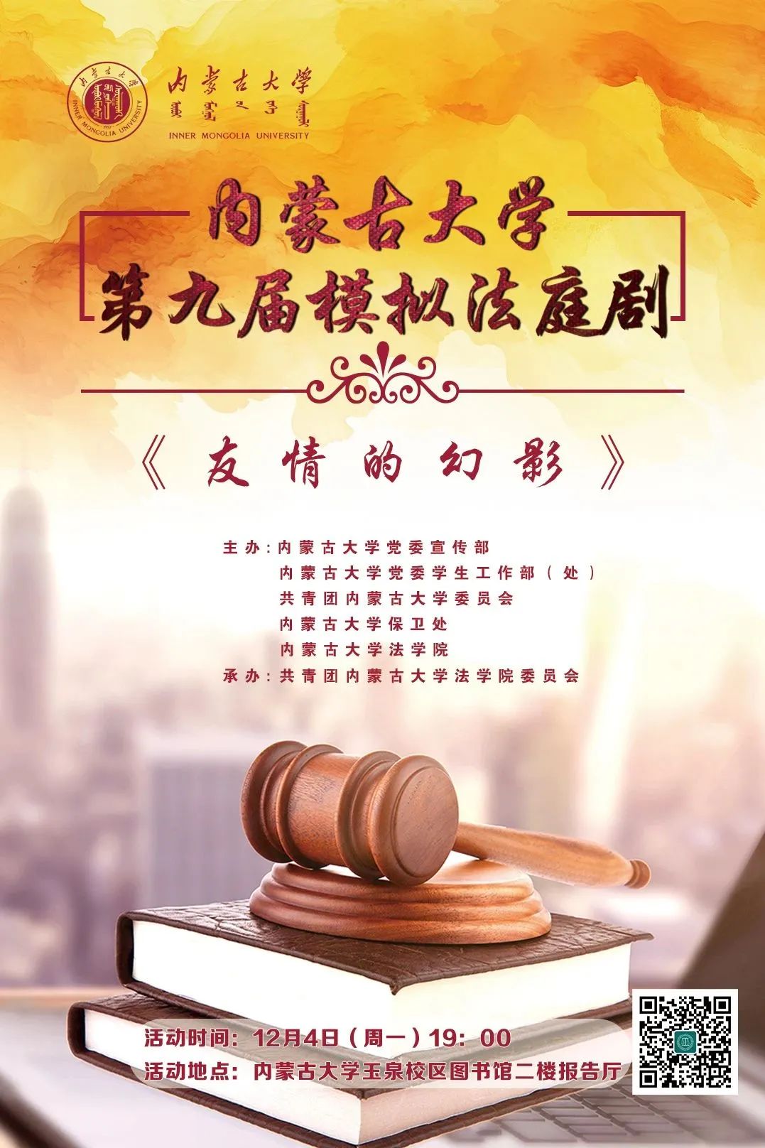 2023年12月4日是第十个国家宪法日,为深入学习贯彻党的二十大精神,贯彻落实习近平法治思想和习近平总书记关于宪法法治教育的重要指示精神,太阳成集团tyc122ccvip围绕“大力弘扬宪法精神,建设社会主义法治文化”的宪法宣传周主题,全面开展宪法宣传活动,于12月4日晚19点在玉泉校区图书馆二楼报告厅举办了第九届模拟法庭剧——《友情的幻影》。