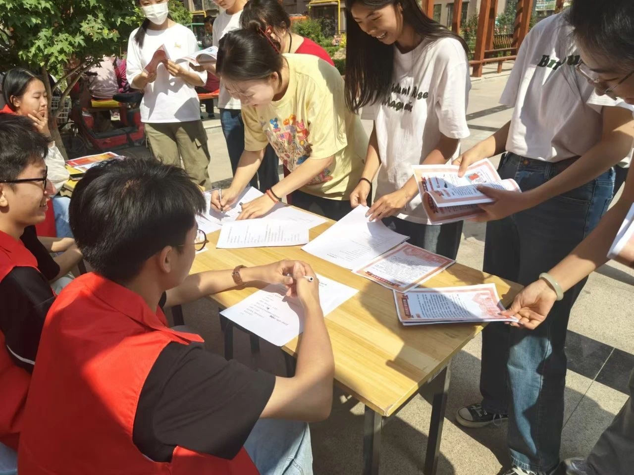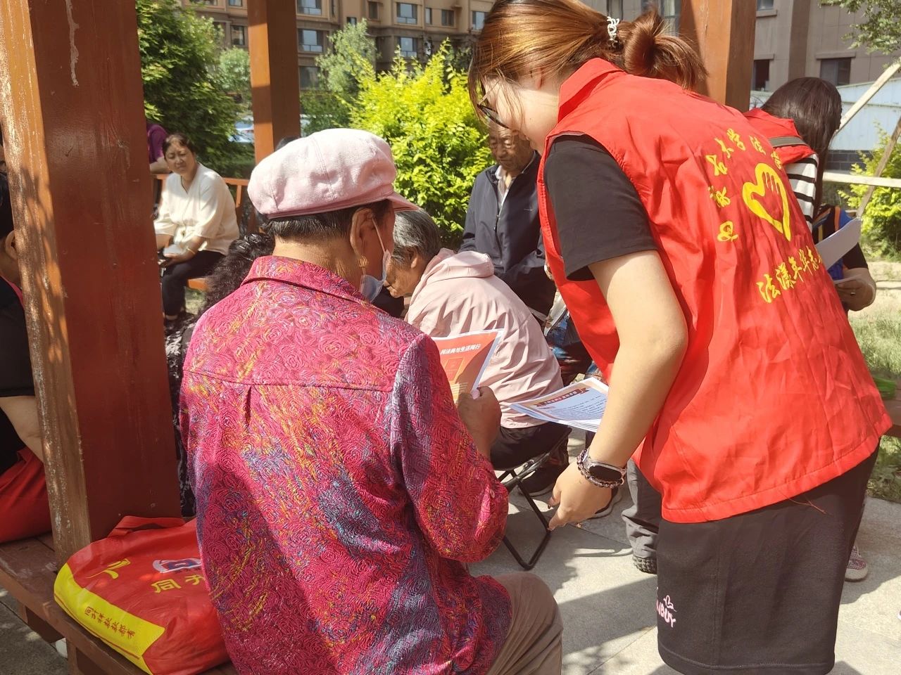 活动期间,志愿者们通过发放法律知识宣传手册、邀请居民填写调查问卷、为居民们提供法律咨询等方式倾听居民诉求、解答居民疑惑、普及法律知识。