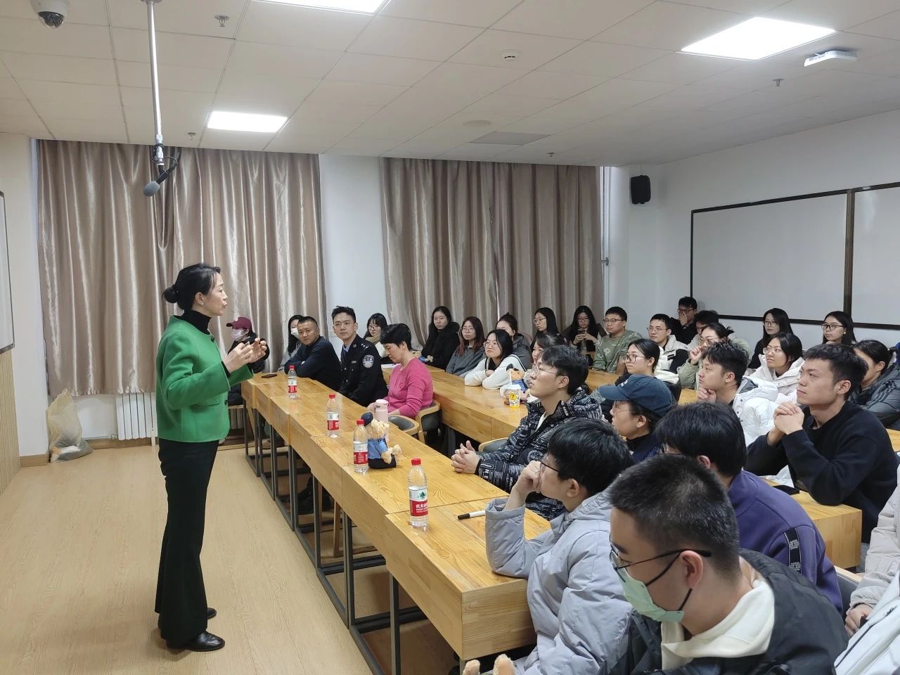 最后,中山市公安局政治处副主任王多为同学们深入讲解了此行的目的,具体阐述了公安职业生涯规划与公安系统的晋升路径,深刻总结了公安的工作使命与社会价值,并根据自身从警经历为同学们的职业选择提出了宝贵的意见。
