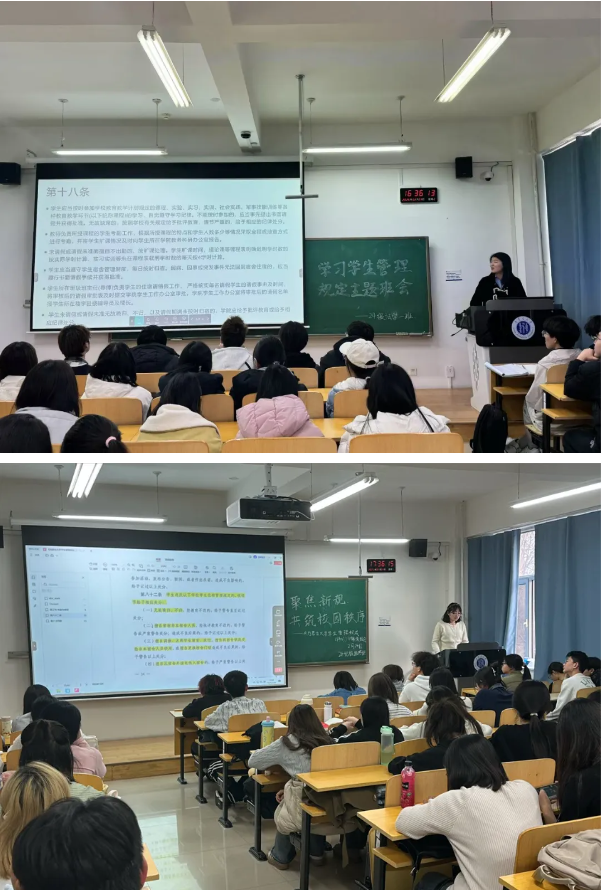 为强化同学们的遵规守纪意识,公司各班围绕《太阳成集团tyc员工管理规定(修订)》开展了主题班会活动。聚焦宿舍管理、请销假制度等内容,通过PPT讲解、案例分析和互动答疑等形式,帮助员工全面掌握新规。