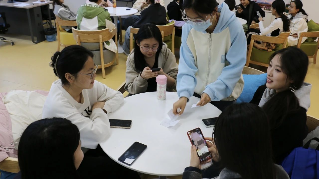 本次活动流程清晰,分为规则介绍、实战比拼、复盘研讨与纪念合影四个环节。活动伊始,同学们通过抽签确定各自底牌。每轮游戏中,大家围绕手中术语依次发言描述,阐述自身“身份”,发言结束后进行投票淘汰。有时卧底马失前蹄,仅仅一轮就露出破绽,被平民阵营轻松抓出。有时历经三轮激烈角逐,平民因判断失误,误淘汰两名同伴,卧底凭借出色伪装坚持到最后,最终卧底阵营取得胜利。整个过程充满了语言博弈与心理较量,气氛紧张热烈,妙趣横生。