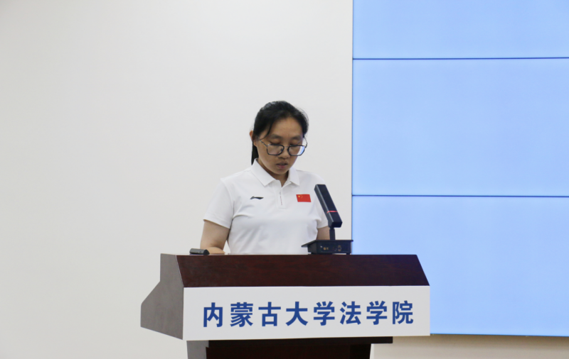 2025级法学1班祁雨暄作为本科新生代表发言。她言辞中满是对老员工活的憧憬,以及成为优秀法律人的坚定决心。她表示,将认真学习法律知识、锤炼法律技能,在学习和实践中提升综合素质,与同学们携手开启法学新征程。