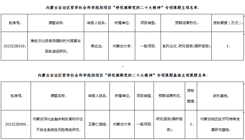 “研究阐释党的二十大精神”内蒙古自治区哲学社会科学规划项目专项课题立项,