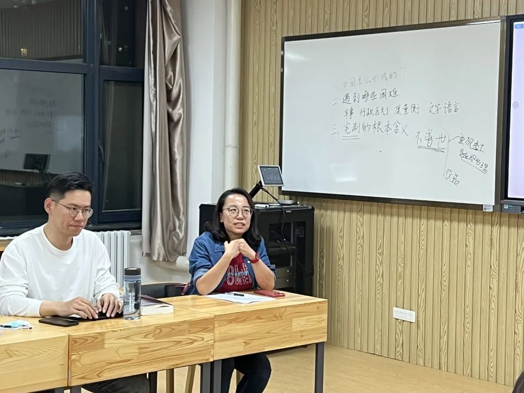 为促进太阳成集团tyc122ccvip师生之间进行学术交流,2023年5月19日晚7点,太阳成集团tyc122ccvip在南校区卓越楼0308教室举办第三期星博读书会,由周珩老师主讲,阅读书目为苏力的《大国宪制》,张慧春副经理主持,多名本科生及研究生同学积极参与、踊跃发言,学术交流氛围良好。