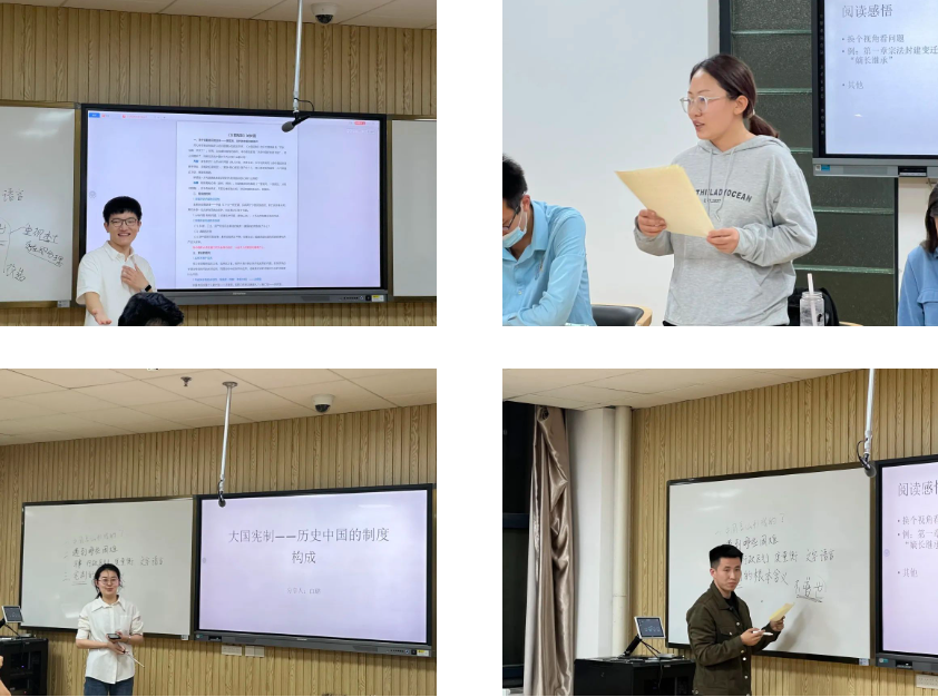 读书会开始,首先由三名本科生同学和六名研究生同学分享自己的读书心得,他们各抒己见。部分同学对书的内容进行分类总结,分享个人见解并提出问题;部分同学旁征博引,立足原书,拓展思维,建立了多学科联系。周珩老师对同学们的思考提出表扬,并对疑问进行解答。