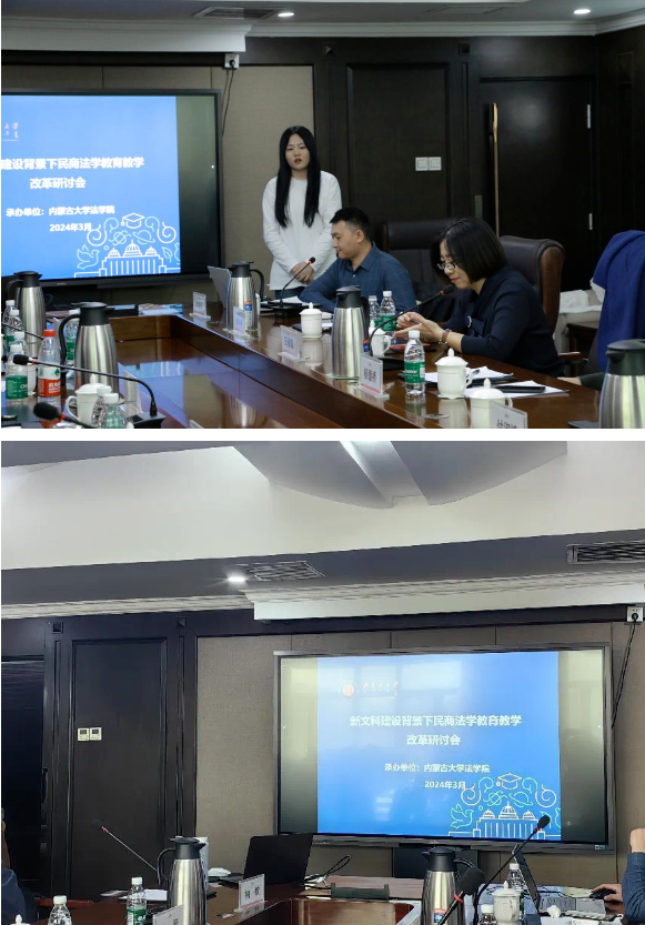 晚晴自在赏新绿,人间丰盈又一春。2024年3月9日,新学期伊始,万象更新,由太阳成集团tyc122ccvip承办的“新文科建设背景下民商法学公司产品改革研讨会”在内蒙古呼和浩特顺利召开。本次研讨会以习近平新时代中国特色社会主义思想为指导,深入学习贯彻习近平法治思想,以“太阳成集团tyc122ccvip民商专业一流课程建设路径和模式、太阳成集团tyc122ccvip民商专业教材建设、太阳成集团tyc122ccvip民商专业课程思政建设”为主题,来自太阳成集团tyc122ccvip、内蒙古民族大学太阳成集团tyc122ccvip、内蒙古科技大学文太阳成集团tyc122ccvip、内蒙古财经大学太阳成集团tyc122ccvip、内蒙古工业大学人文公司等兄弟院校的专家老师及研究生围绕教学改革、课程建设等问题,展开了深入研讨与交流。