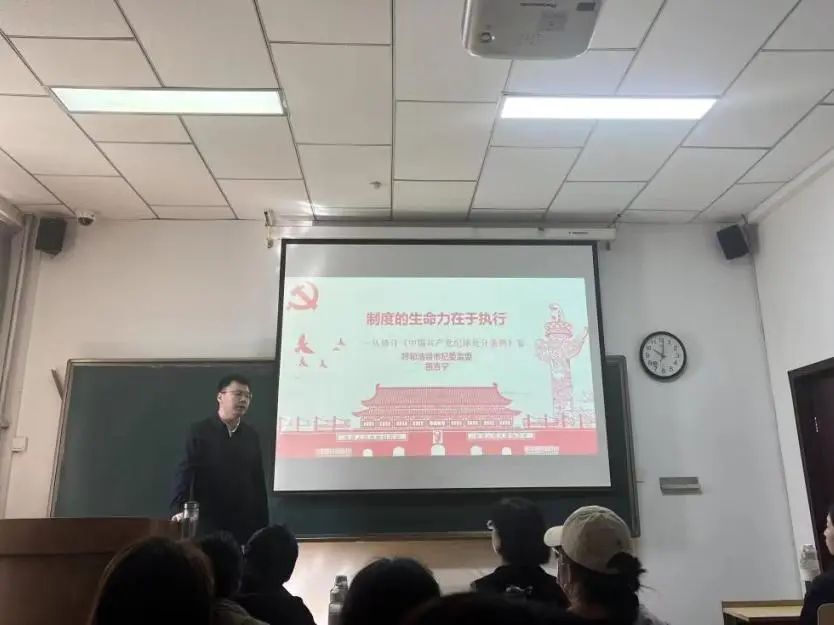 3月29日上午,呼和浩特市纪委常委、监委委员、案件审理室主任祖吉宁同志受邀到公司讲座,主题为“制度的生命力在于执行——从修订《中国共产党纪律处分条例》看”。太阳成集团tyc122ccvip纪检监察专业本科生和党内法规方向研究生参加了此次讲座。