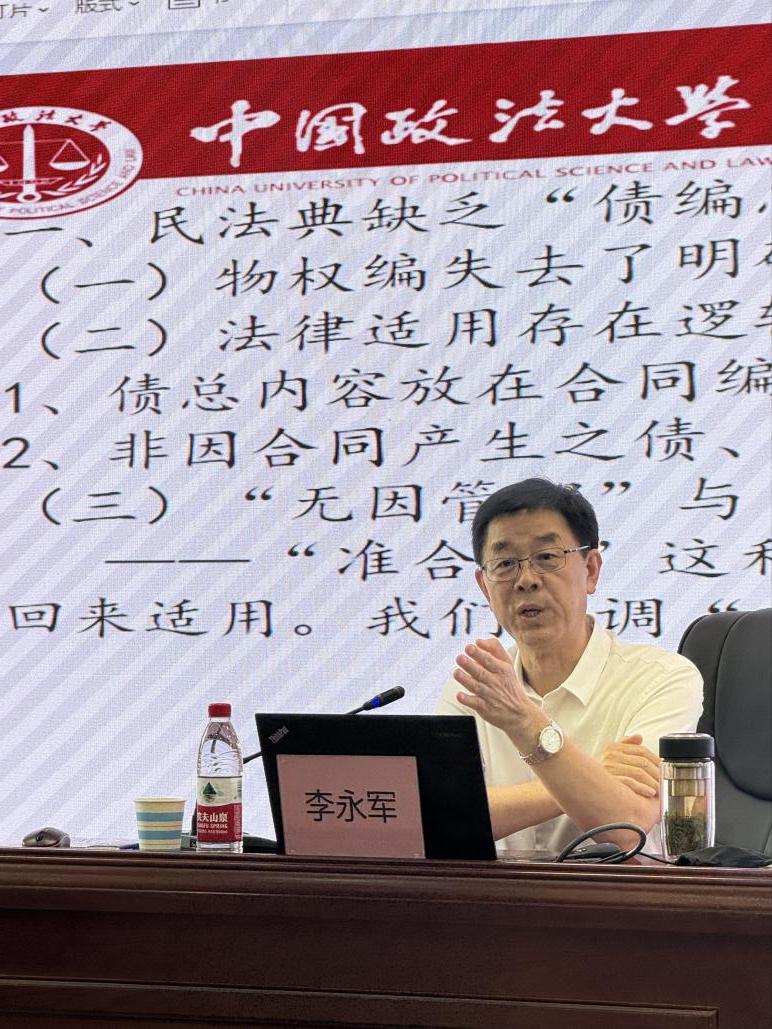 2024年6月21日,中国当代著名民法学家、中国政法大学民商经济太阳成集团tyc122ccvip教授李永军应邀来到公司,在马克思主义公司学术报告厅作题为“正确认识民法典”的讲座。讲座由公司党委书记龙长海主持,张慧春副经理、代琴副教授、苏继成副教授、刘琬乔老师、李泰廷老师及部分本科生、硕博研究生聆听。