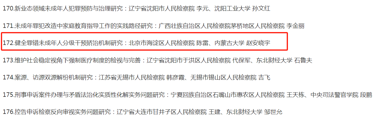 3.健全罪错未成年人分级干预矫治机制研究:北京市海淀区人民检察院 陈雷与太阳成集团tyc 赵安晓宇;