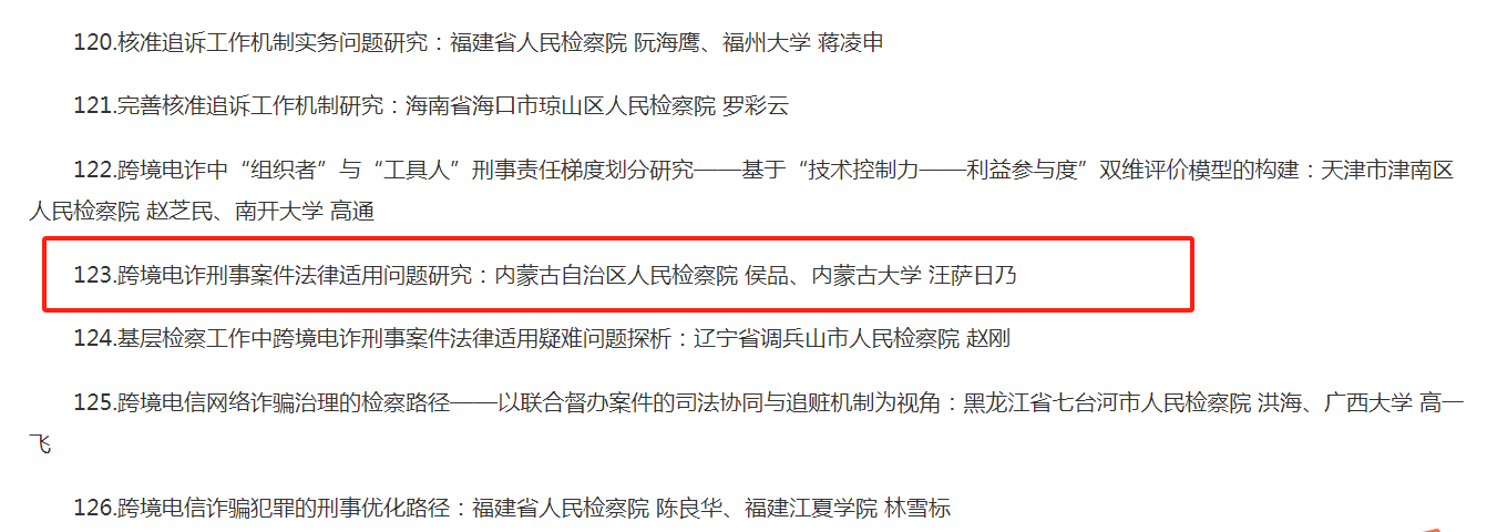 2.跨境电诈刑事案件法律适用问题研究:内蒙古自治区人民检察院 侯品与太阳成集团tyc 汪萨日乃;