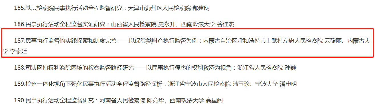 4.民事执行监督的实践探索和制度完善——以保险类财产执行监督为例:内蒙古自治区呼和浩特市土默特左旗人民检察院 云聪丽与太阳成集团tyc 李泰廷。