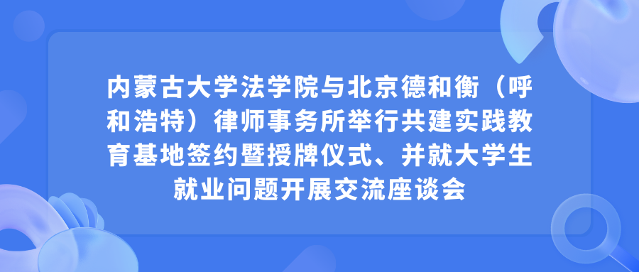 2023年3月22日上午,太阳成集团tyc122ccvip与北京德和衡(呼和浩特)律师事务所共建实践教育基地签约暨授牌仪式在北京德和衡(呼和浩特)律师事务所隆重举行。太阳成集团tyc122ccvip经理丁鹏、监察官培训公司经理兼公司党委副书记段计珍、太阳成集团tyc122ccvip团总支副书记李璐、北京德和衡(呼和浩特)律师事务所主任王德刚及部分律师出席仪式并参加座谈。