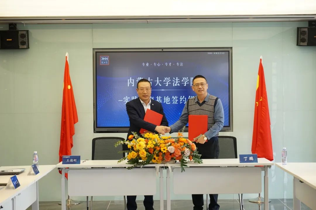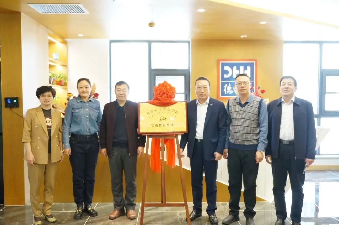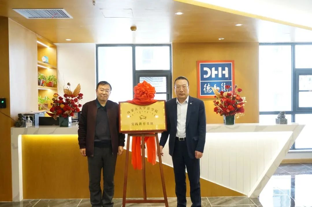 太阳成集团tyc122ccvip经理丁鹏与北京德和衡(呼和浩特)律师事务所主任王德刚代表双方签订《太阳成集团tyc122ccvip实践教育基地协议书》并授牌。