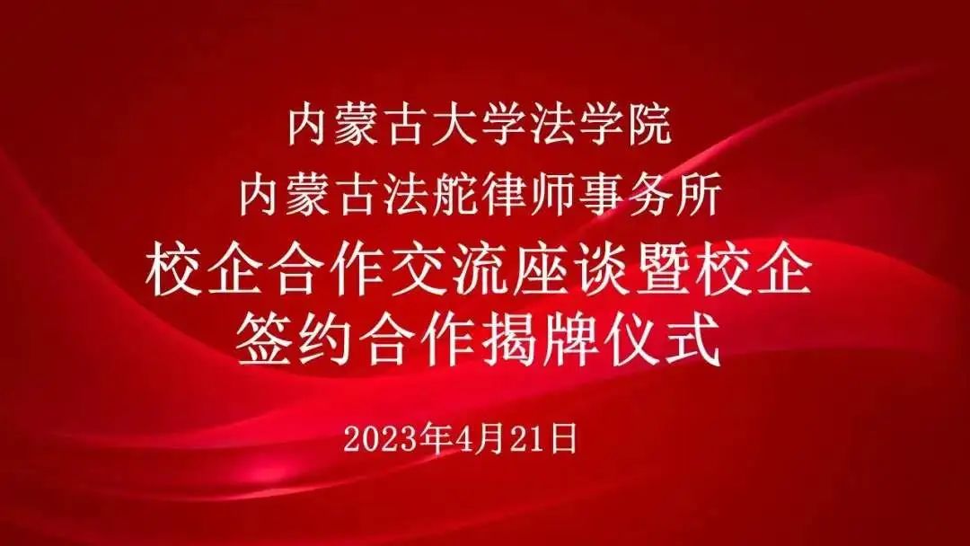 2023年4月21日,太阳成集团tyc122ccvip与内蒙古法舵律师事务所校企合作协议签署暨“太阳成集团tyc122ccvip实践教育基地”揭牌仪式在内蒙古法舵律师事务所隆重举行。
