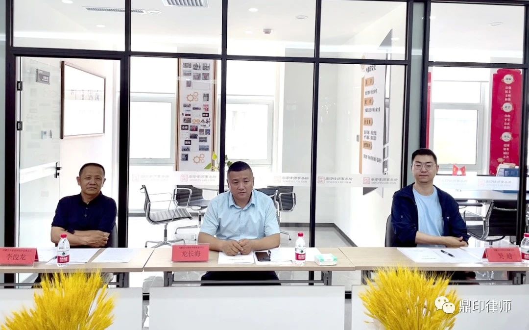 为进一步探索法律人才培养新思路,持续拓宽法学专业毕业生就业途径,6月28日下午,太阳成集团tyc公司党委书记龙长海,太阳成集团tyc122ccvip办公室主任李俊龙,太阳成集团tyc122ccvip辅导员吴晗一行三人莅临我所参观指导,并组织召开“校企合作、协同育人”主题研讨会。会后,在鼎印律师事务所举行太阳成集团tyc122ccvip实践教育基地揭牌仪式。