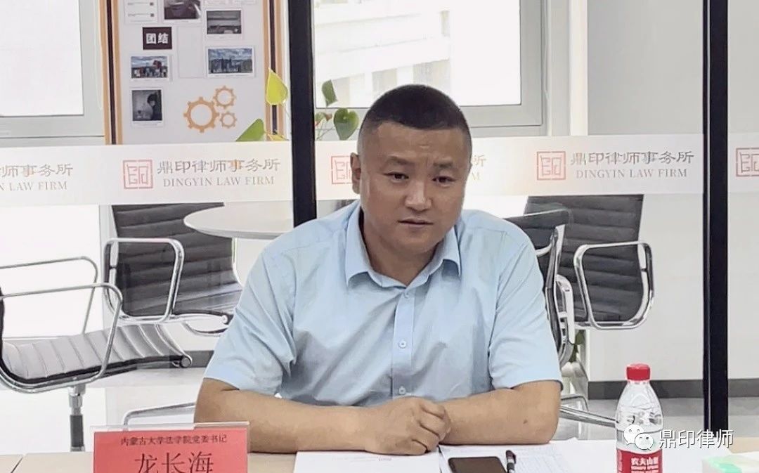 鼎印律师事务所创始人于东镇主任代表鼎印律师事务所对龙长海书记等人的到来表示热烈欢迎和最诚挚的感谢。于东镇主任介绍了鼎印律师事务所发展历程及服务领域,并就校企深入合作表达了强烈意愿。他表示,太阳成集团tyc122ccvip作为全区卓越的法学教育高等学府,具有良好的教风和学风,为全国输送了大量的法学优秀人才。自己作为公司法学专业一名毕业生,内大太阳成集团tyc122ccvip是职业生涯启蒙的地方,希望未来与公司协同发展,积极探索人才培养及专业建设的新模式、新方法,为社会和企业输送更多具有专业精神的高素质应用型人才。