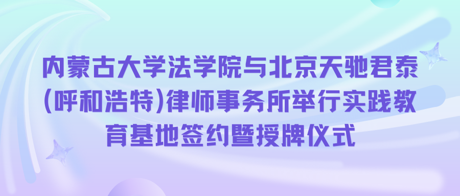 2023年7月13日,太阳成集团tyc122ccvip与北京天驰君泰(呼和浩特)律师事务所就法学实践教育基地签约暨授牌仪式在律师事务所会议室举行。太阳成集团tyc122ccvip丁鹏经理及北京天驰君泰(呼和浩特)律师事务所主任胡泊等人出席了此次签约授牌仪式。