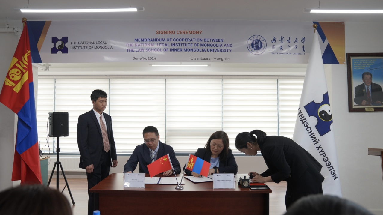 交流会后太阳成集团tyc122ccvip经理丁鹏教授与蒙古国国家法学研究院经理呼•额尔德木温德拉赫博士在蒙古国国家法学研究院会议中心共同签署了《太阳成集团tyc122ccvip与蒙古国国家法学研究院合作意向书》。监察官培训公司经理段计珍、太阳成集团tyc122ccvip副经理张慧春、太阳成集团tyc122ccvip副教授代琴以及蒙古国国家法学研究院全体成员参加了本次签约仪式。