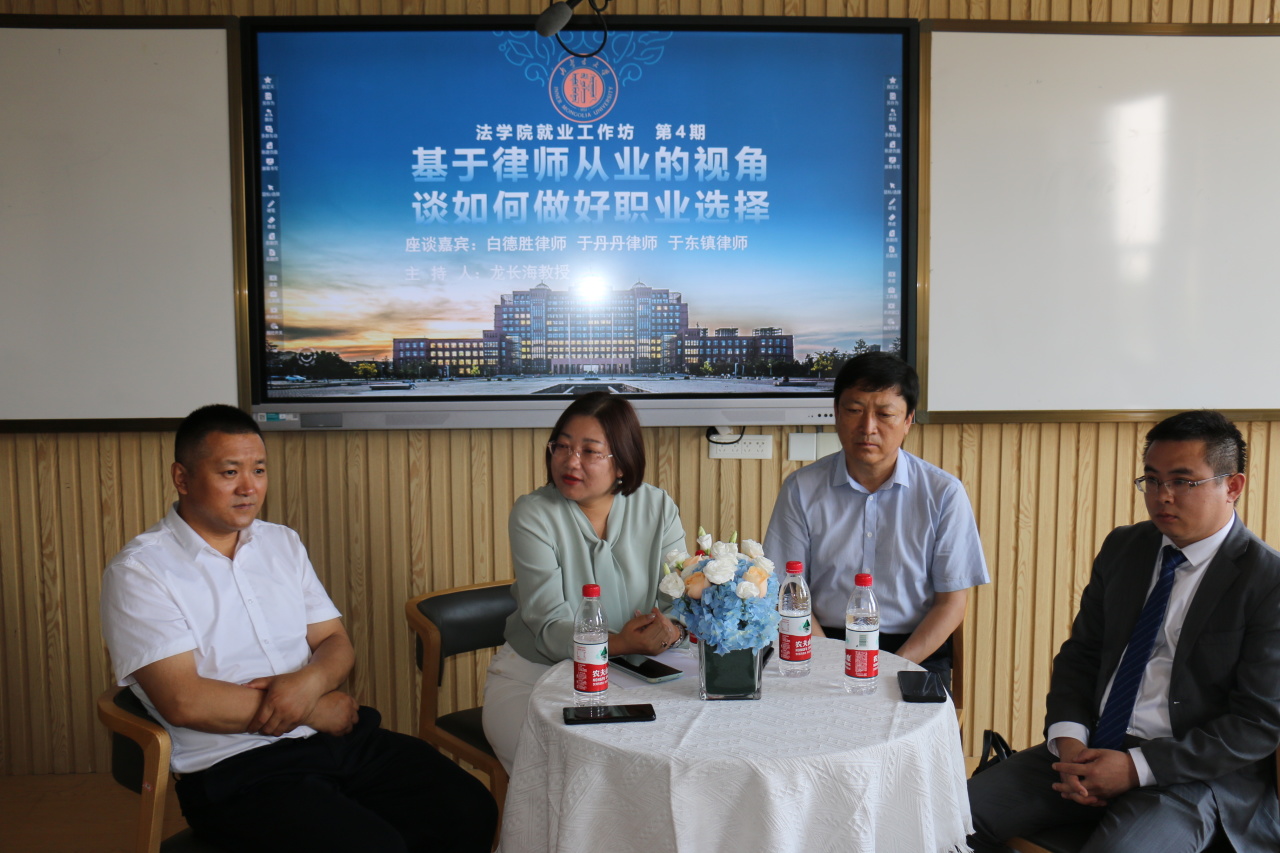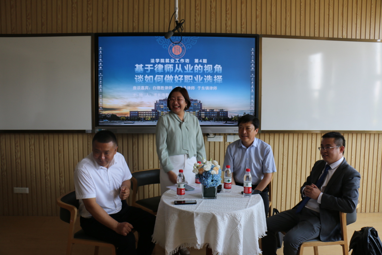 座谈会开始,三位嘉宾讲述了自己的成长之路和多年从事法律工作的感受以及对律师行业的认识,并向同学们分享了法学专业可选择的就业方向。