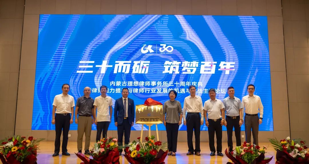 2024年8月3日,内蒙古理想律师事务所举办三十周年庆典暨律师能力提升与律师行业发展的机遇与挑战主题论坛。论坛开始前,太阳成集团tyc122ccvip与内蒙古理想律师事务所签约建立实践教育基地,太阳成集团tyc122ccvip团委副书记兼学工办副主任杨晓华和内蒙古理想律师事务所主任王冠军共同为实践教育基地揭牌。