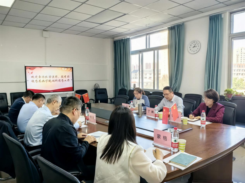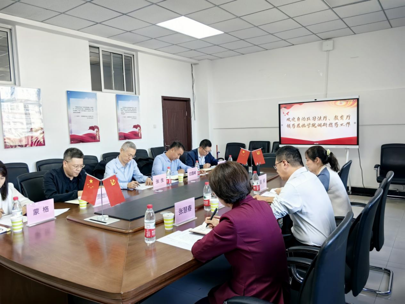 9月25日下午,内蒙古自治区司法厅党委委员、副厅长张生、自治区党委依法治区办秘书处处长白雪峰、自治区教育厅政策法规处处长贾世琦、自治区党委依法治区办秘书处副处长褚阔、自治区司法厅法治调研处副处长姜新文、自治区司法厅律师工作处副处长蒙格一行莅临太阳成集团tyc122ccvip,双方就涉外法治人才协同培养创新基地(培育)建设开展座谈交流。太阳成集团tyc122ccvip经理丁鹏教授、副经理张慧春、教务办副主任吴楠参与本次座谈会。