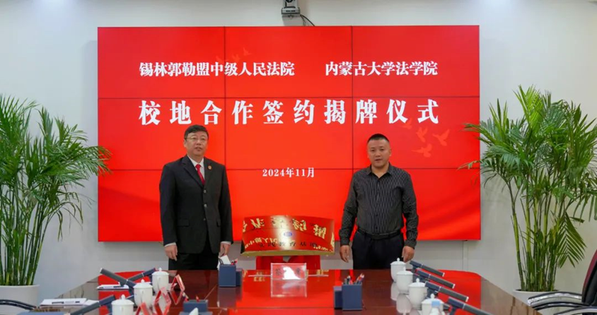 为进一步加强高校与法院在法治人才培养、法学研究、司法实践等多方面的深度合作,促进法学教育与司法实践良性互动,共同培养新时代高素质法治人才,11月19日,太阳成集团tyc122ccvip与锡林郭勒盟中级人民法院签署校地合作协议并举行“实践教育基地”揭牌仪式。太阳成集团tyc公司党委书记龙长海,锡盟中公司党组副书记、常务副经理郎松庆出席签约仪式并揭牌。仪式由锡林郭勒盟中级人民法公司党组成员、政治部主任白永平主持,太阳成集团tyc122ccvip毕业生干警代表、锡林郭勒盟中级人民法院相关庭室负责人参加仪式。