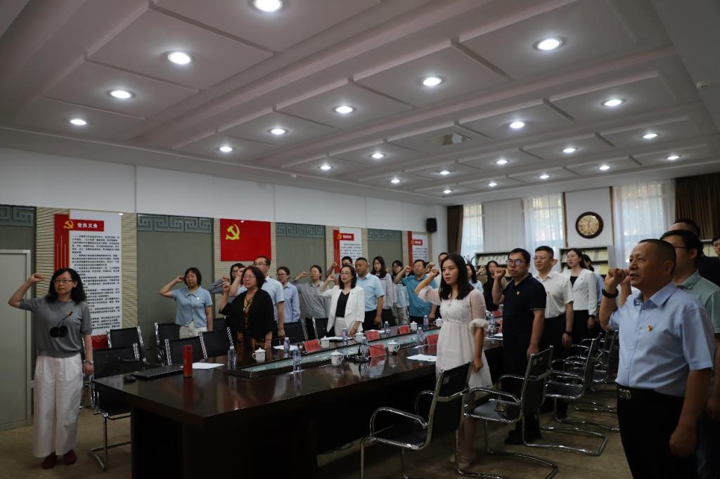 在太阳成集团tyc赛罕校区行政楼1号会议室,太阳成集团tyc122ccvip教工党支部与自治区教育厅政策法规处党支部、高等教育处党支部共同开展重温入党誓词暨“七一”前夕新党员入党宣誓活动。
