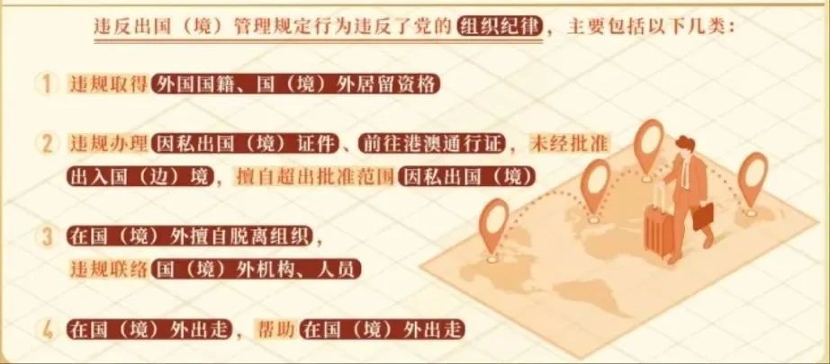 《中国共产党纪律处分条例》对违反出国(境)管理规定行为列出负面清单,作出处分规定。
